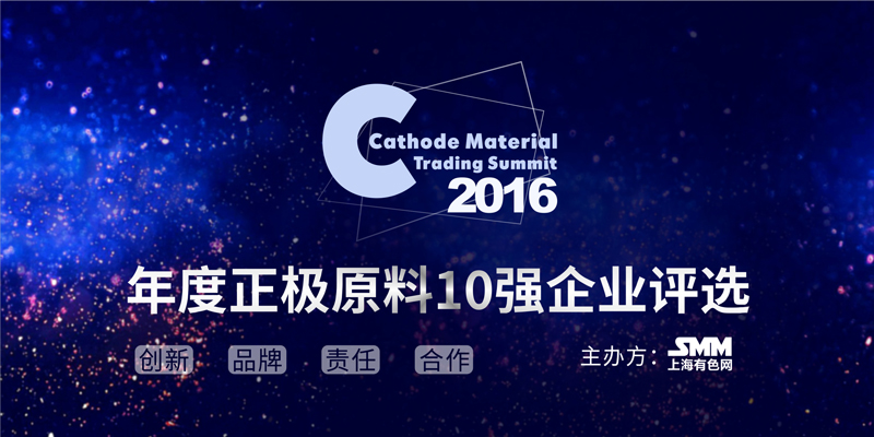 中国正极原料2016年度10强企业评选活动由上海有色网组织,通过对全国正极原料企业的评选、表彰