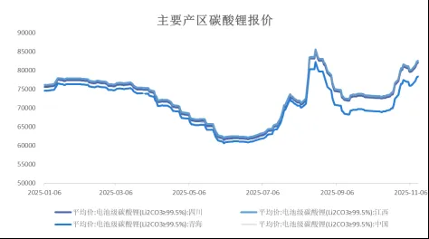 从价格方面看,出口均价9054.52美元/吨,环比涨价1.52%,同比增加18.94%。以美元汇率中间价7.11计算,2025年11月到港后国内进口价格区间预计在6.4万元左右。考虑13%增值税及船运等杂费后,预计到港后进入现货市场成本均价为7.3万元左右。国内方面主要产区报价在8.2万左右,内外价差较显著。