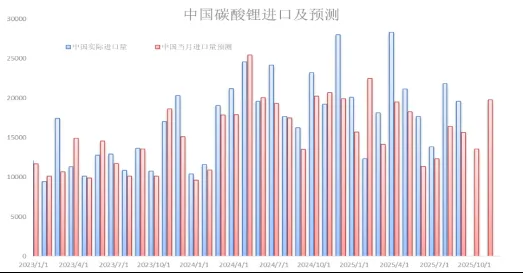 从量级上看,智利10月份出口中国的碳酸锂较9月大幅回升,依据以往经验判断,智利出口量约占我国进口量的85%左右水平,整体航运时间预计在1至1个半月左右。故该批次碳酸锂或将于2025年11-12月左右陆续到港,预计到港当月碳酸锂进口量级将达到1.97万吨左右,较10月水平大幅回升。