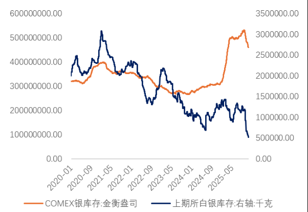 从基本面来看,据白银协会预测,2025年全球白银市场仍将出现约9500万盎司的结构性供应缺口,为白银连续第五年呈供不应求格局。供应方面,2025年全球矿产银供应预计约8.13亿盎司,同比大致持平,回收供应小幅增长1%左右,整体供应增幅仅约1%。需求方面,全球总需求预计同比下降约4%至11.2亿盎司,其中工业需求下降约2%,尽管需求有所回落,但供应端缺口依然突出。光伏产业用银需求成为长期支撑因素,国际能源署(IEA)预计,从2024年到2030年,新增太阳能装机容量将达到4000吉瓦。这表明了到2030年,仅太阳能一项就将推动白银需求每年增加近1.5亿盎司,即在2024年11.69亿盎司的实物需求基础上再增加13%。库存方面,中国交易所库存已降至近十年低位。10 月中国对白银出口超 660 吨创纪录,大量金属运往伦敦以缓解当地挤仓,同时光伏组件和首饰消费走强,令国内库存被迅速抽空,上期所期货价格出现近月升水的紧张格局,也进一步加剧了银价短期迅速飙升所推动的逼仓行情。